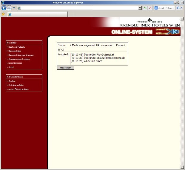 Mandantenfähiges Newsletter-Versandsystem mit vielen Features ursprünglich umgesetzt für die Kremslehner Hotelgruppe.