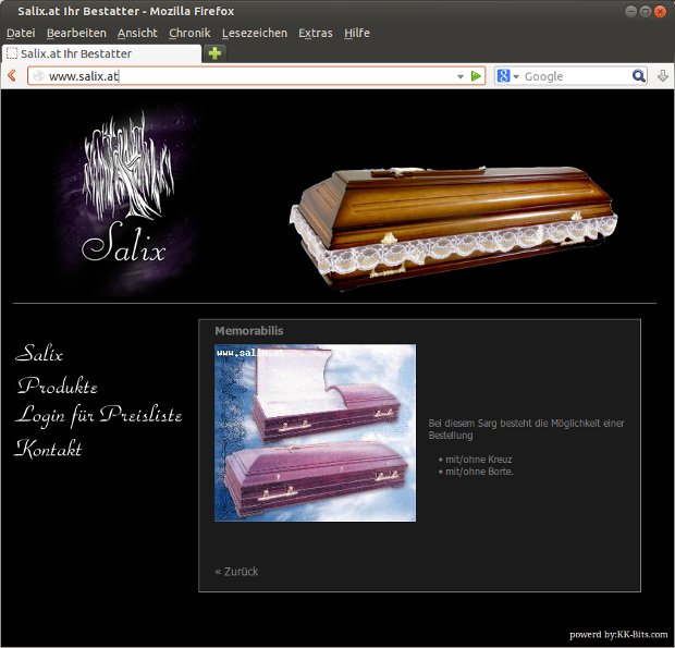 Schlichte Webseite für einen Sarghändler und Bestattungsunternehmer aus Wien.
